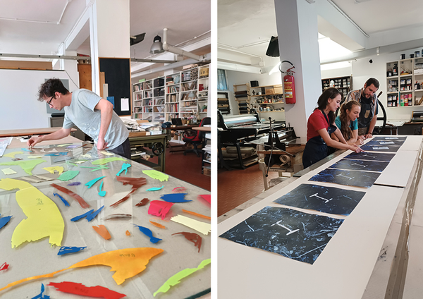 Stampa con torchi a mano e motore a stella. Piccoli, medi e grandi formati.