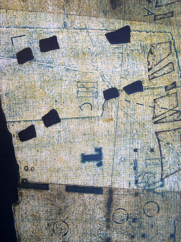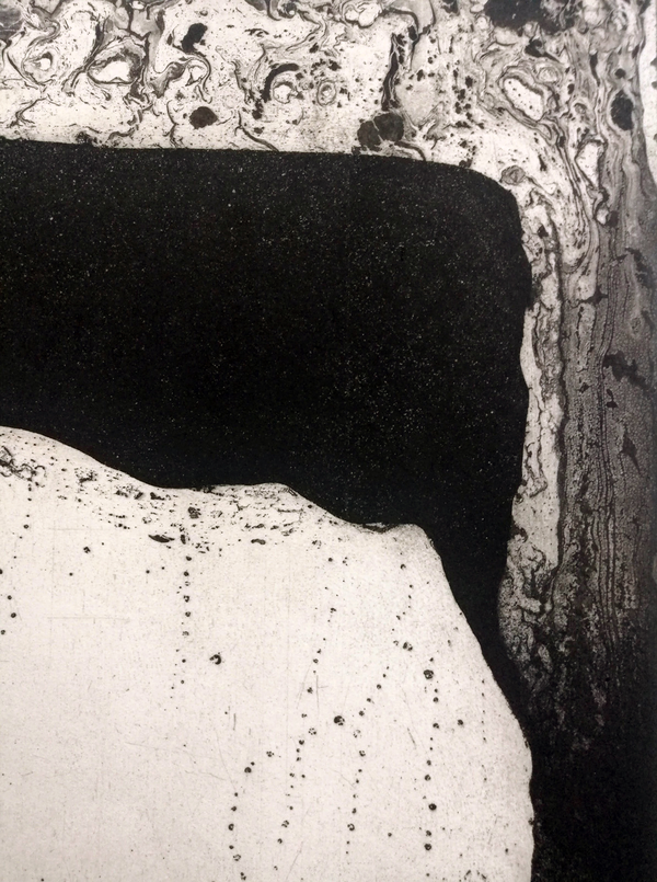 Il carborundum è una soluzione tecnica utilizzata negli anni sessanta da Henri Goetz. Si mescola con una vernice-collante la polvere di carborundum e si stende con il pennello o con la spatola sulla lastra. L’indurimento della pasta permette l’inchiostratura e la stampa al torchio. L’artista ha sostituito alla vernice, il Modeling Paste, una pasta modellante a base acrilica che, utilizzata pura o mescolata al Carborundum crea superfici più o meno porose. Una soluzione che in stampa restituisce molteplici variazioni materico – tonali.